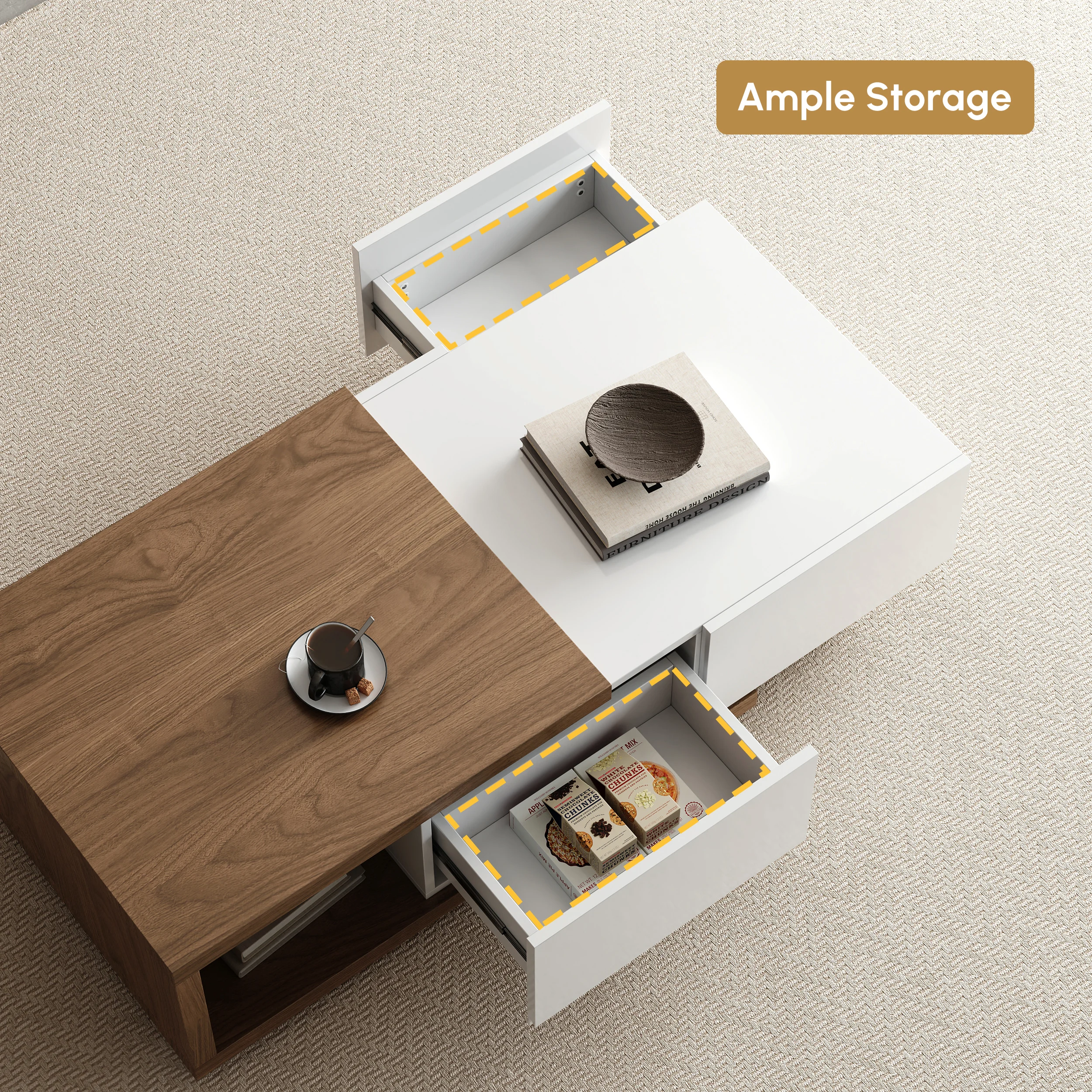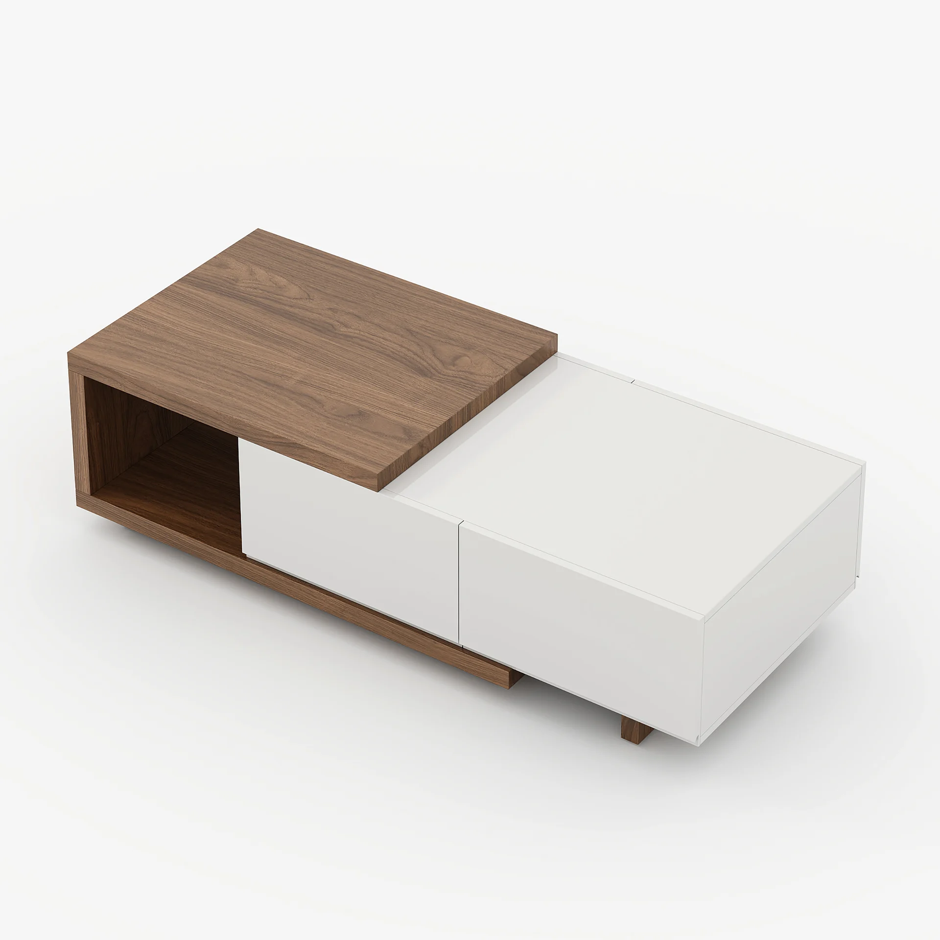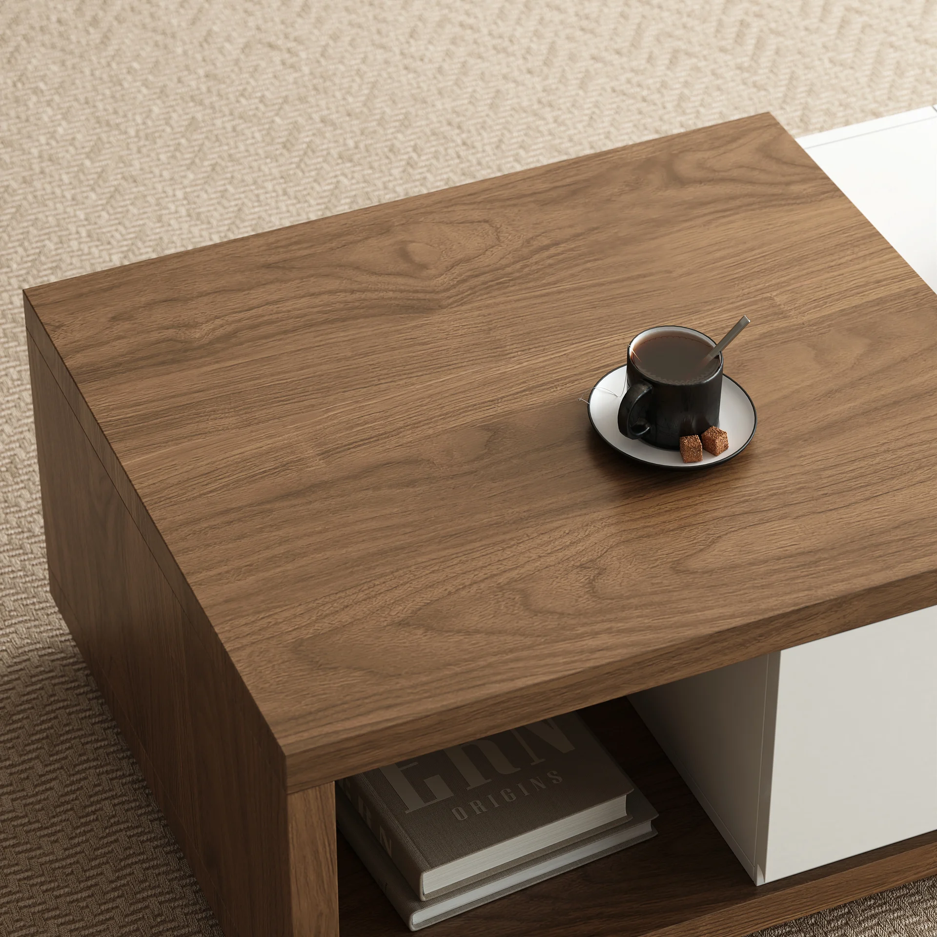 Quoint TV Stand and Coffee Table Set combines rich wood tones with white finishes, creating a modern yet warm aesthetic. Perfect for contemporary living rooms seeking elegance and functionality.