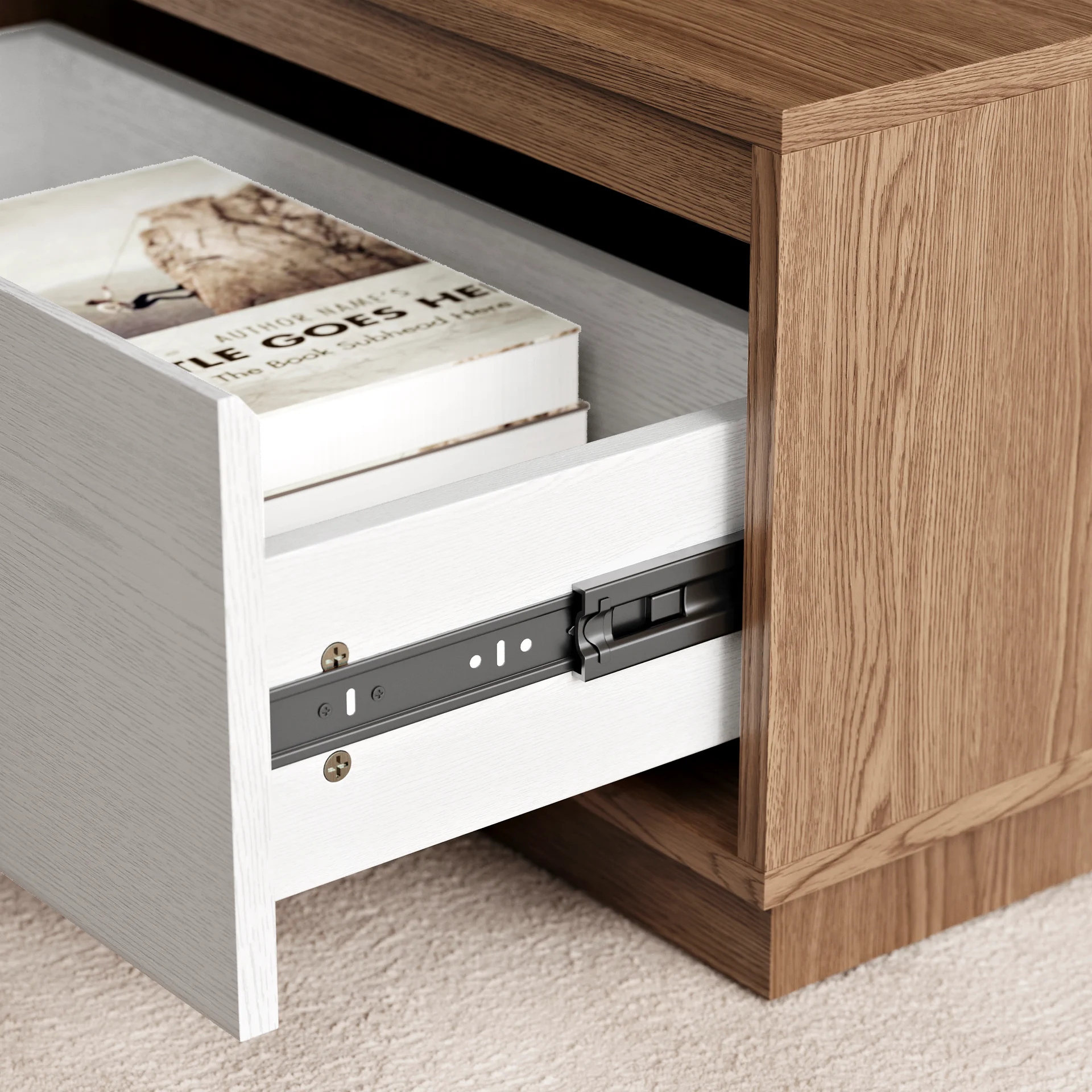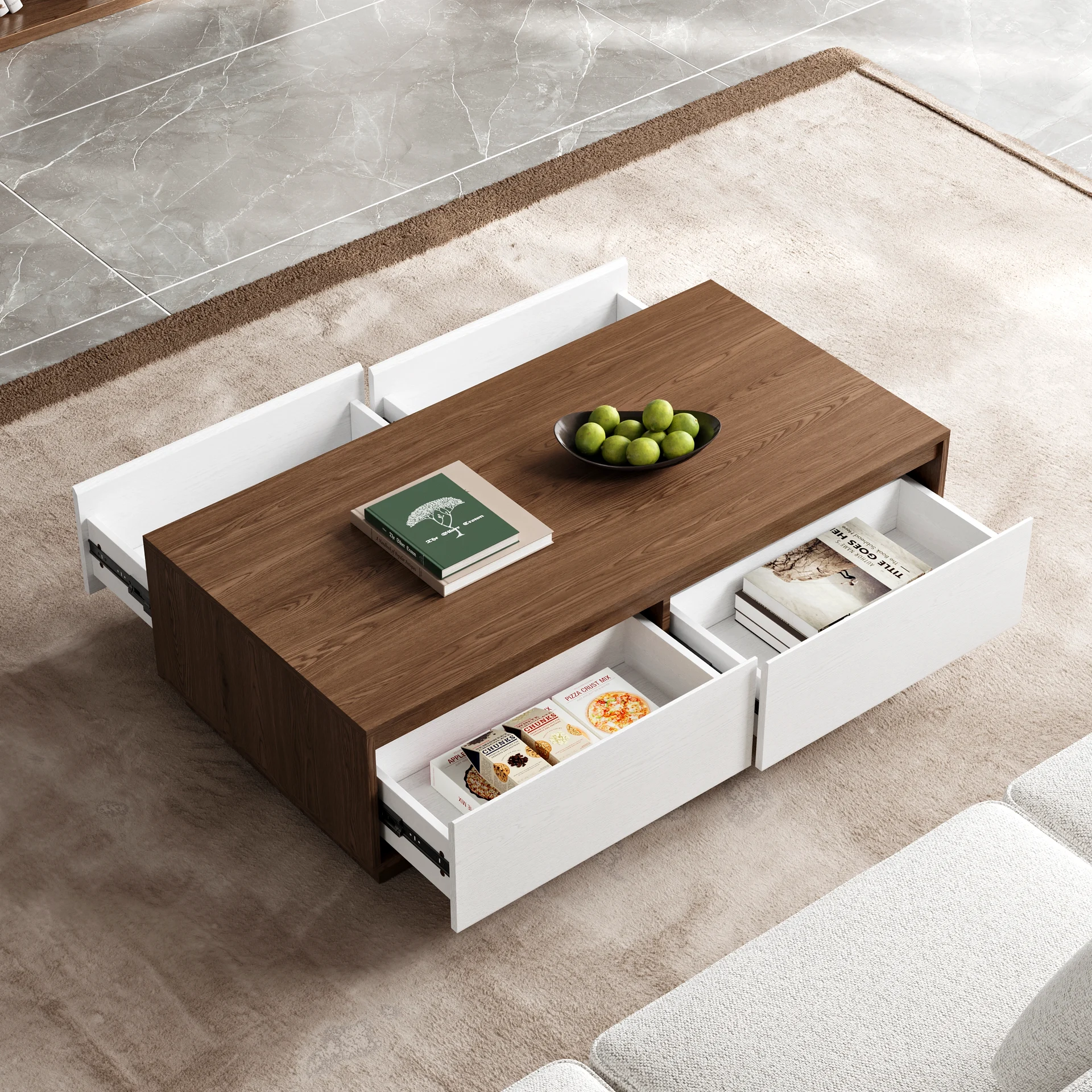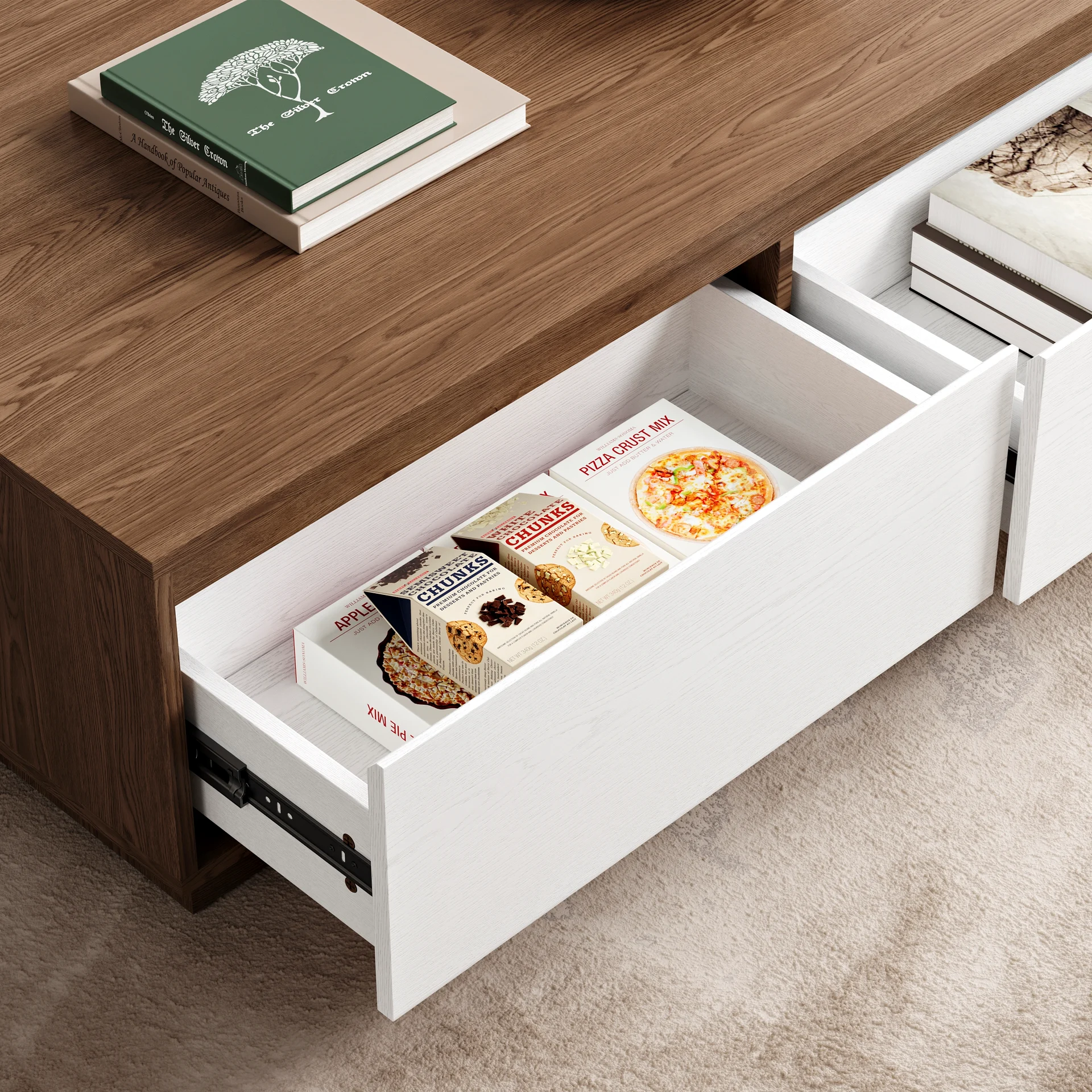 4 pull-out drawers to neatly store living room essentials