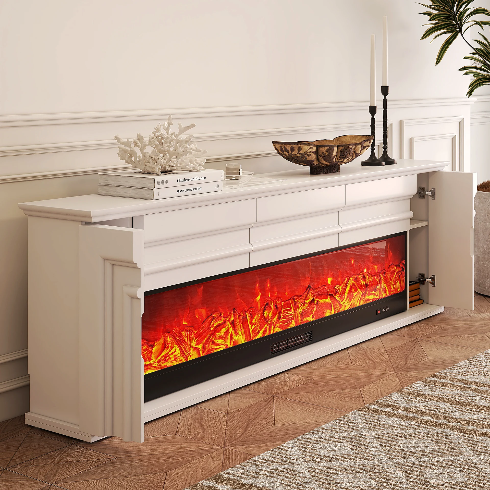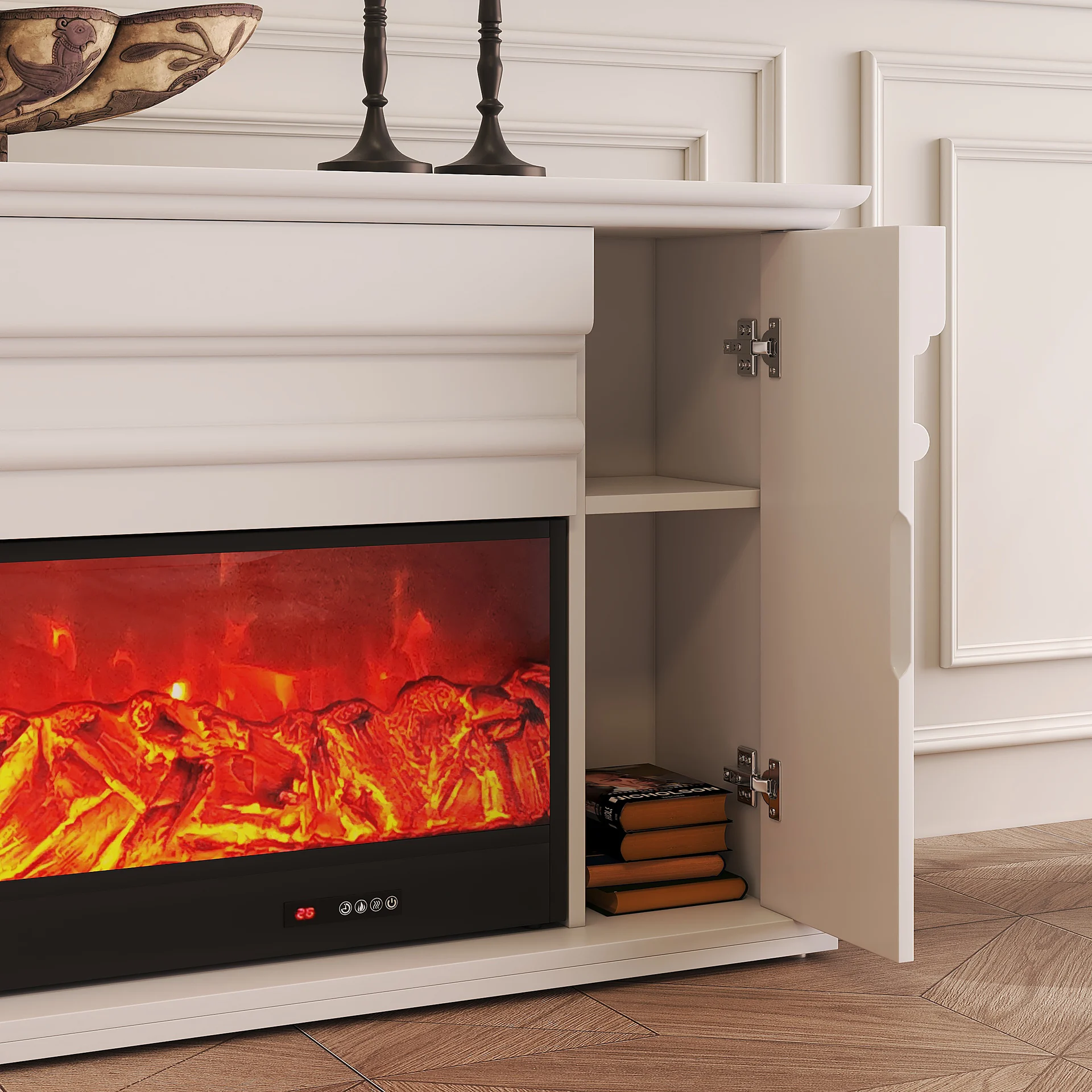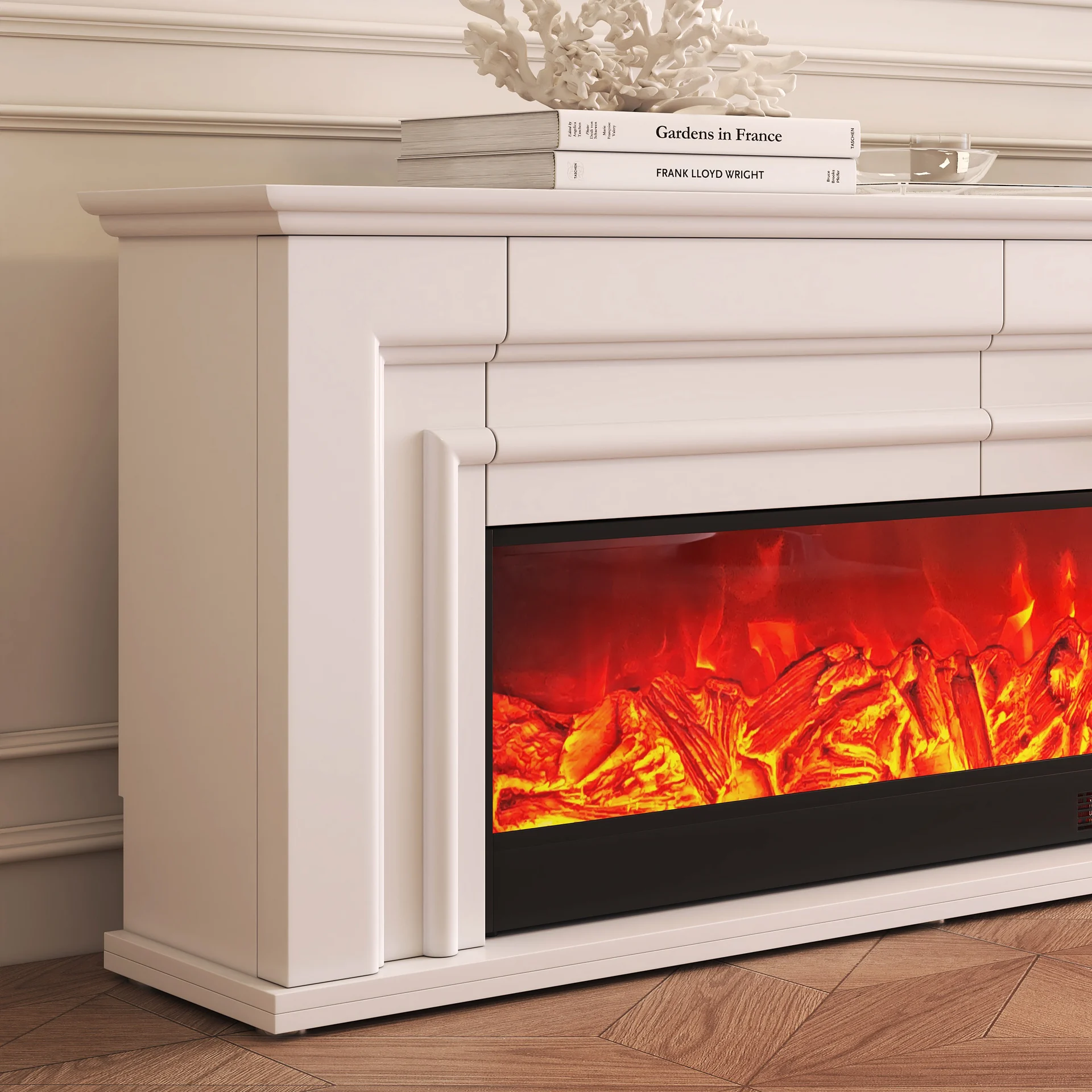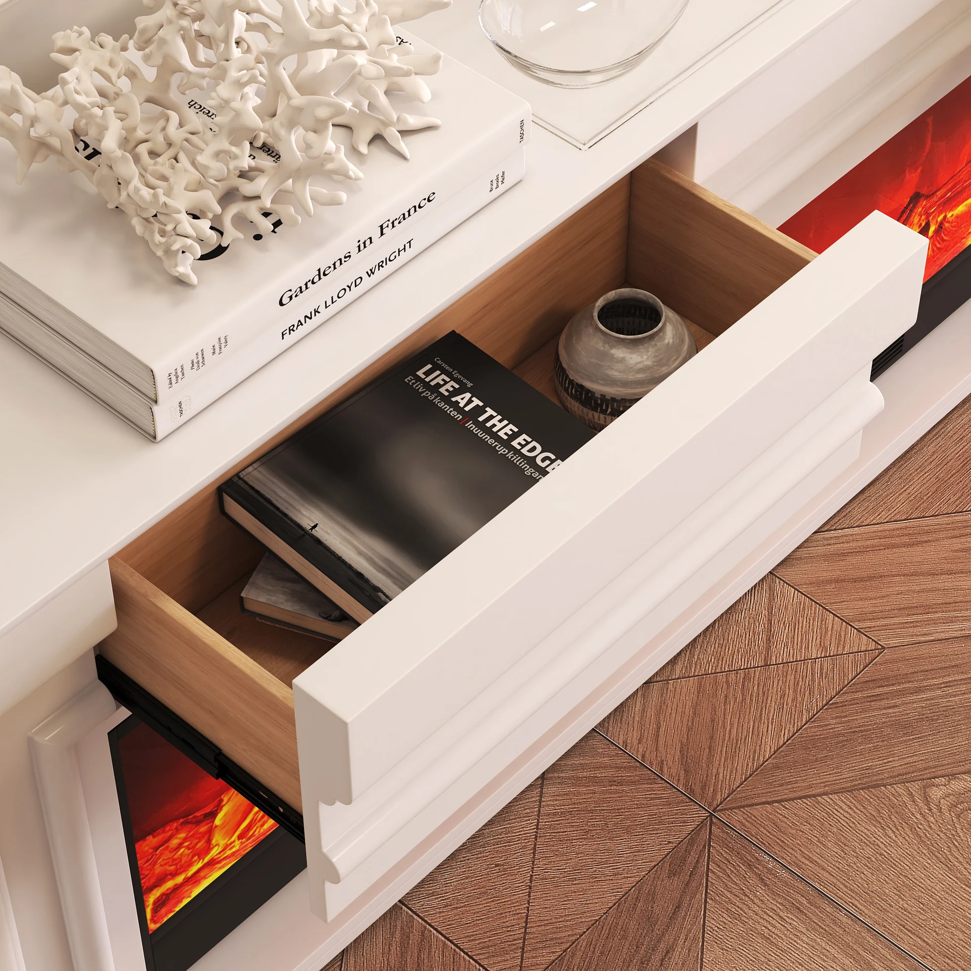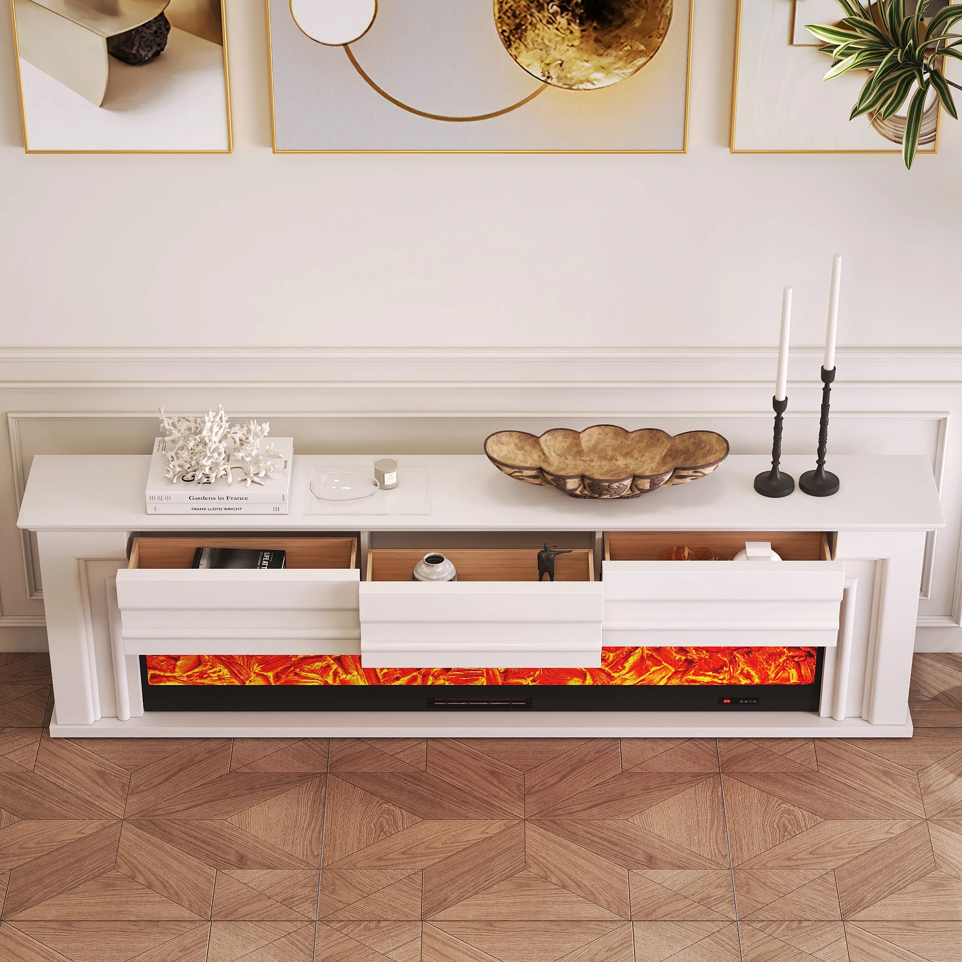 A sleek fireplace TV stand with storage, adjustable heat, and flame brightness, offering both warmth and style for your modern living space.