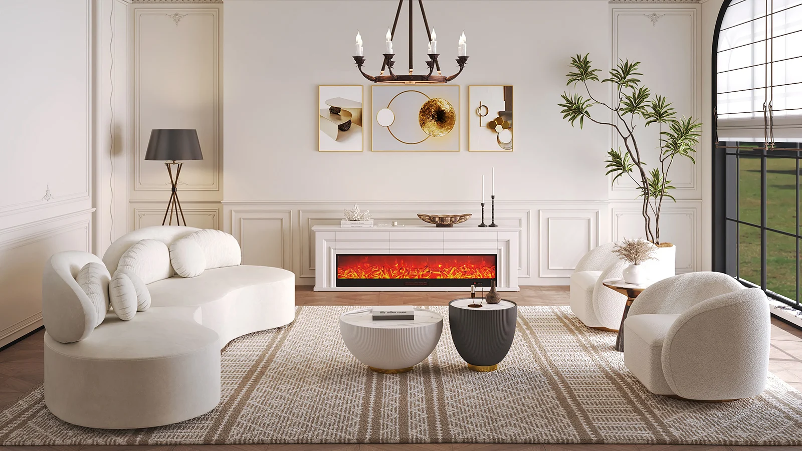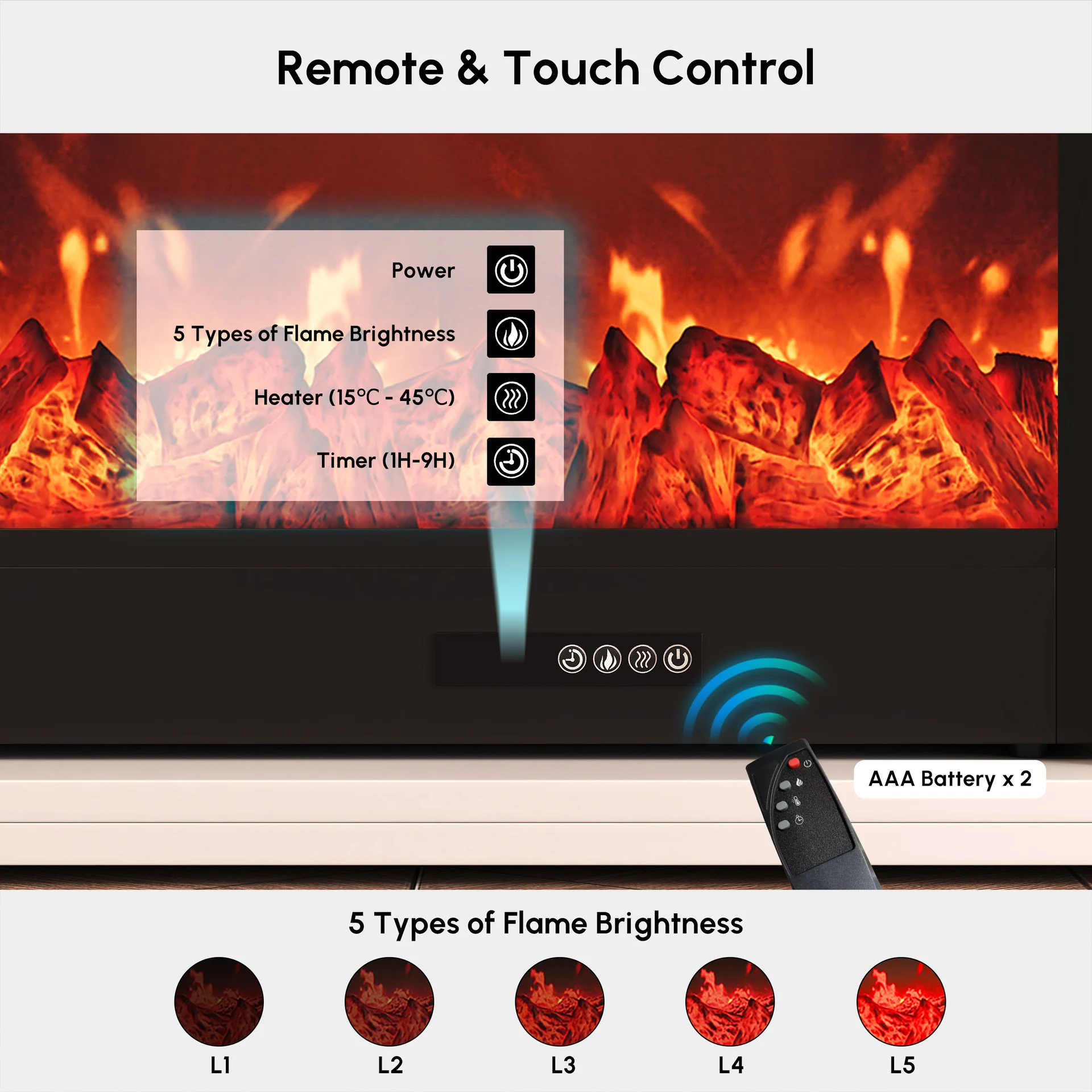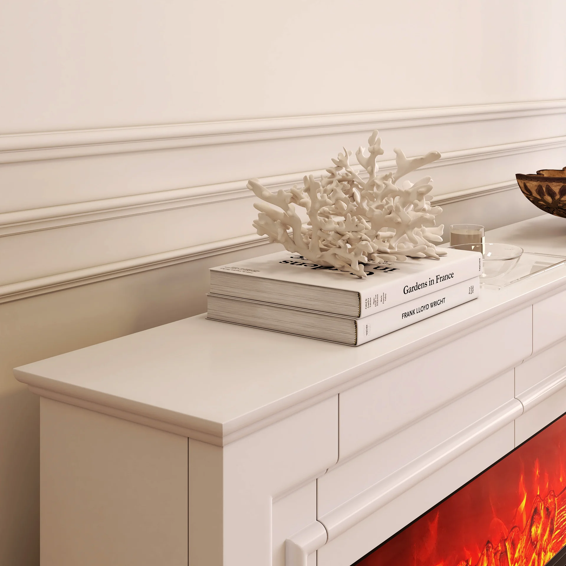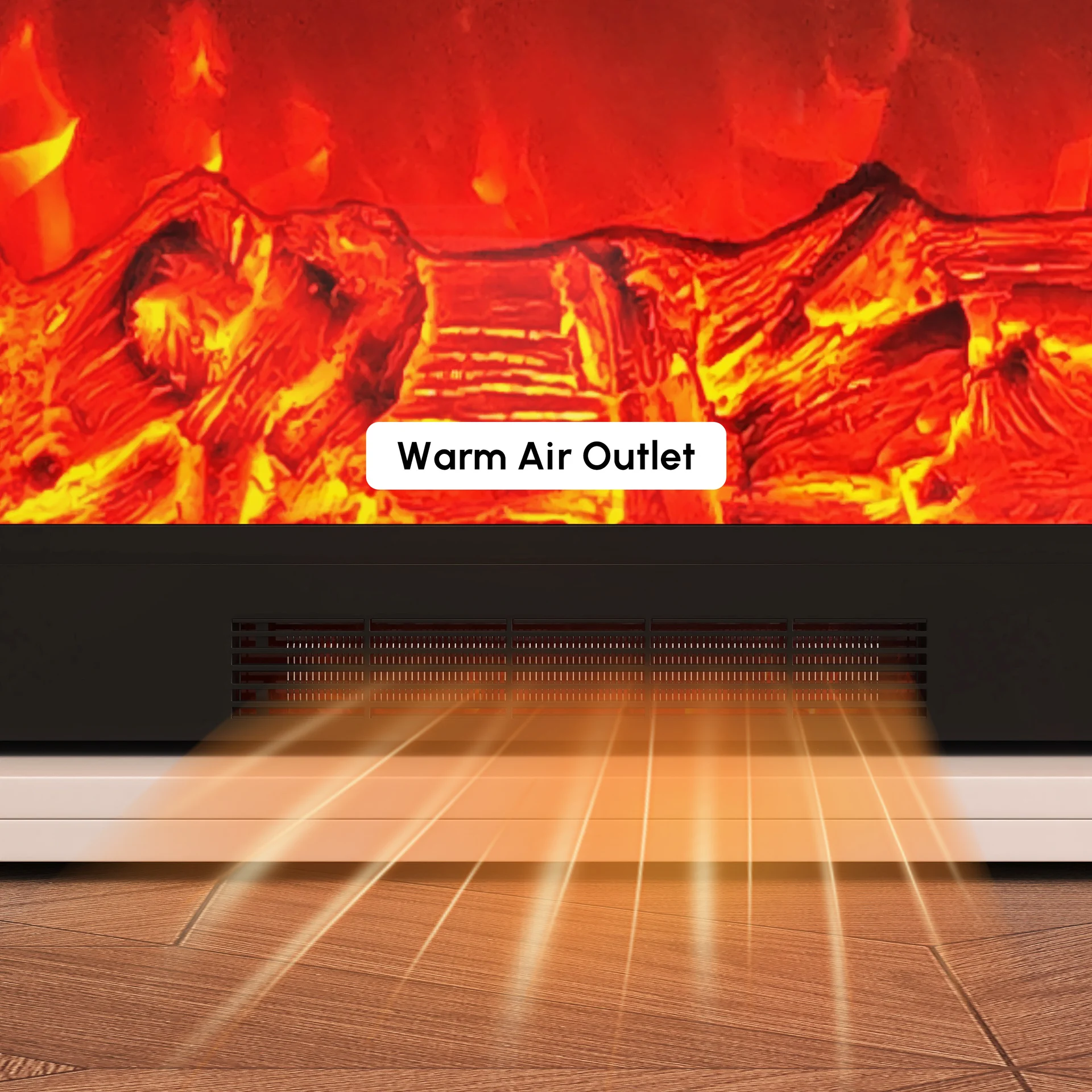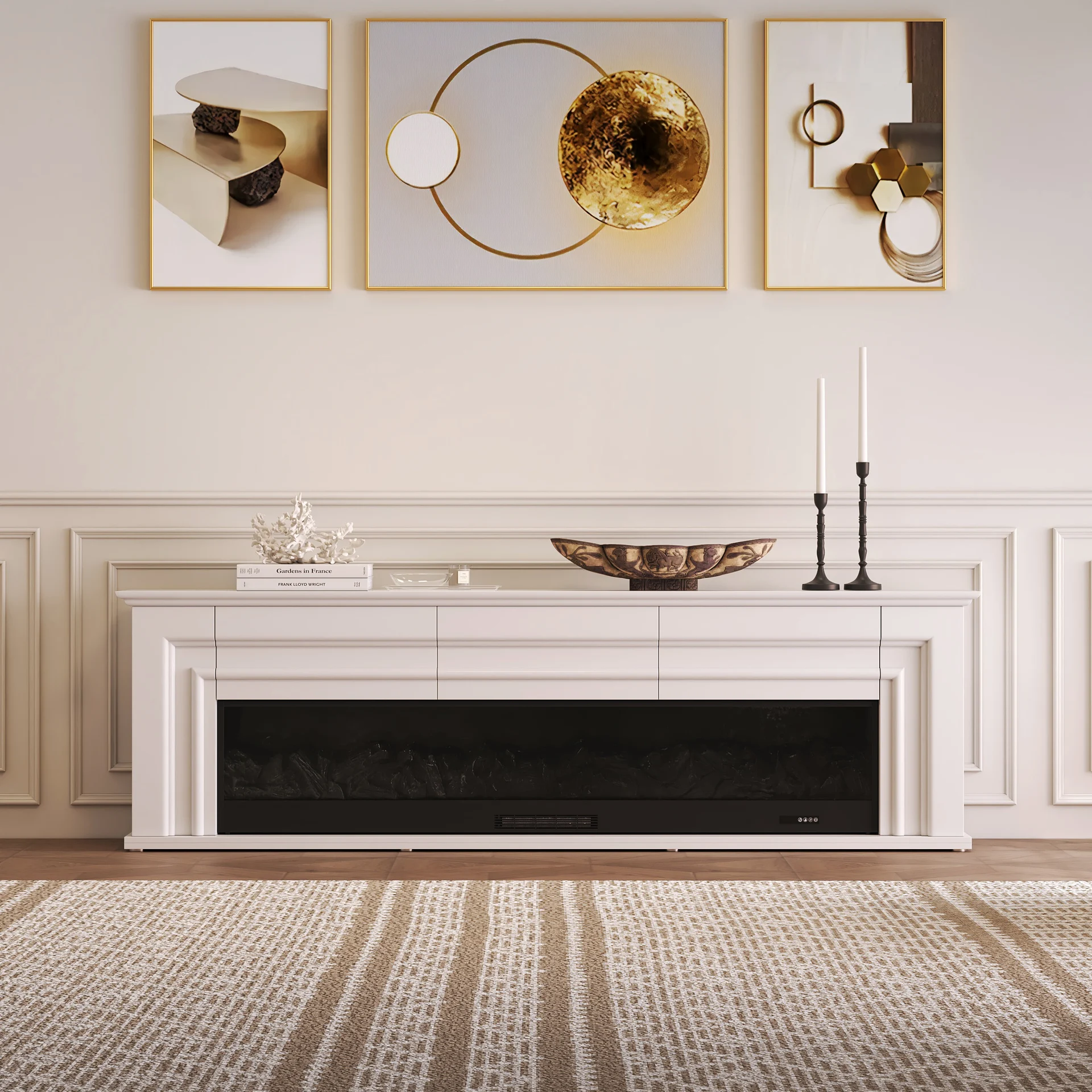 A sleek fireplace TV stand with storage, adjustable heat, and flame brightness, offering both warmth and style for your modern living space.