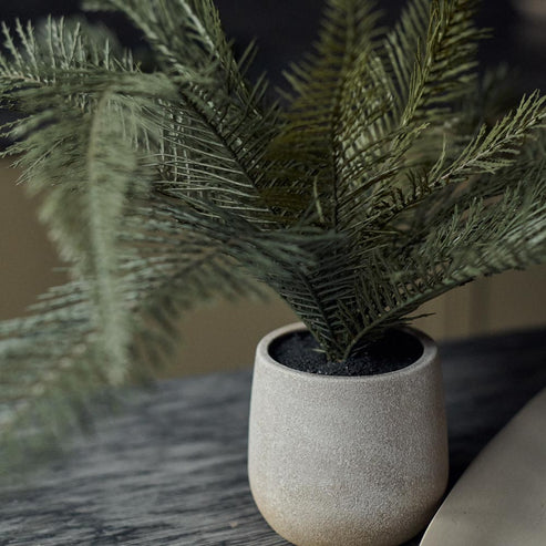Plants bring in a soothing and calming feeling to any space, and the soft evergreen leaves on this faux fern will turn your home into your own mini oasis. Planted in a simple grey pot, this artificial fern can be easily moved around your home, transforming every surface it lands on without the fuss of a real plant. Sit on the shelf in your kitchen or bathroom, on the console in your hallway or on the side table in your living room. This potted plant will enliven any surface especially when layered up with a few decorative accessories like a sculpture, some tea lights and a stack of books.