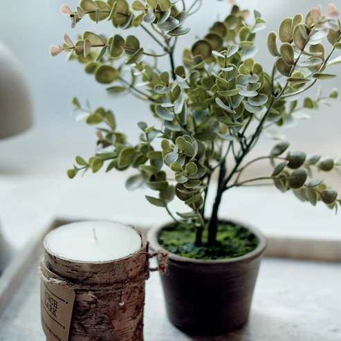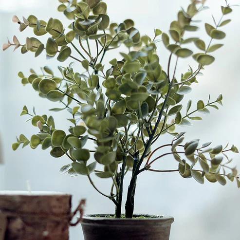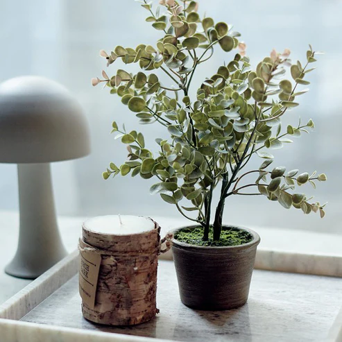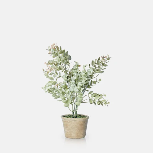 The Artificial Potted Eucalyptus Bush is compact and versatile. The papier mache pot gives an arty vibe and won’t fail to enliven any surface you choose to style it on.