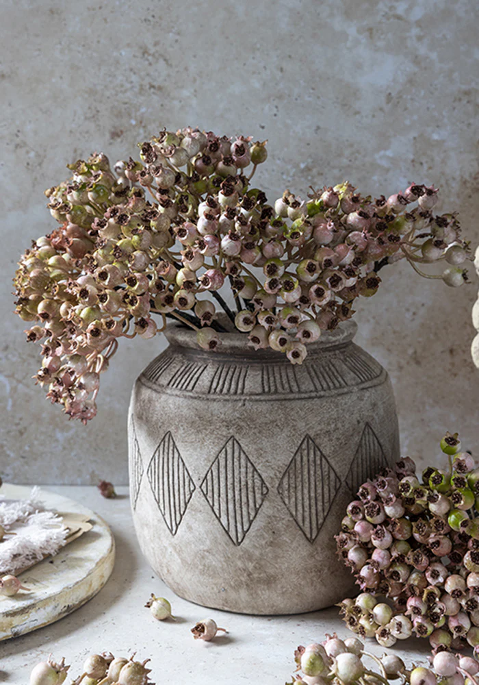 Additional Information: Our rosehip bunch blush is sold as a bunch of 5 stems. Shown in the Tarla Vase with 3 bunches.