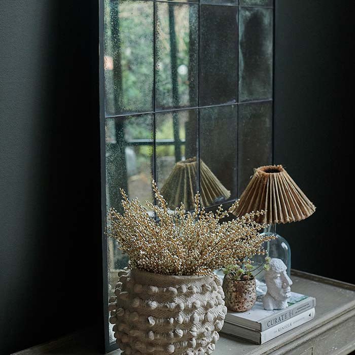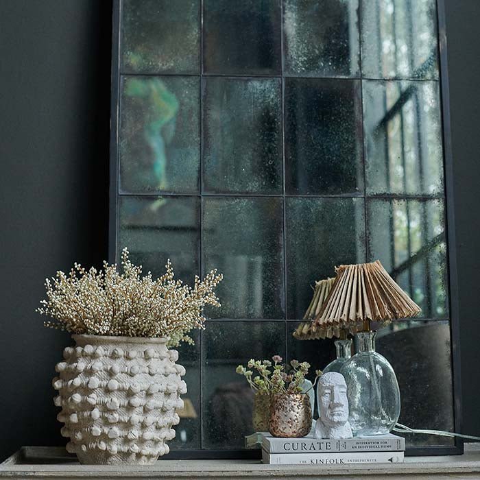 Set in a slim black iron frame with an antique mirrored finish, this elegant window pane mirror will make your space feel bigger, brighter and way more stylish.