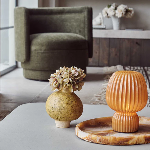A new take on the classic antique silhouette, our Bera Ceramic Vase emanates rustic charm and an organic vibe that we can’t get enough of. Finished in a warm, yellow hued glaze and with charming decorative handles, it’s a stunning interplay of silhouette and materiality. Stunning if you want it simply as part of your decor, the beautiful textured finish also pairs well with so many of our botanicals, but we especially love it with some of our softer stems. Add a faux hydrangea or two or some large-headed flowers like our garden bunch or artificial dahlias.