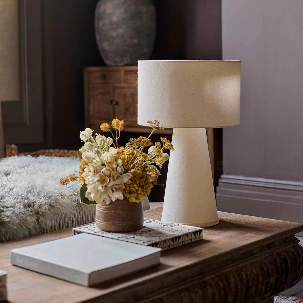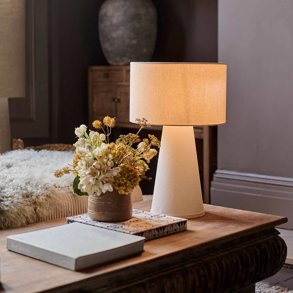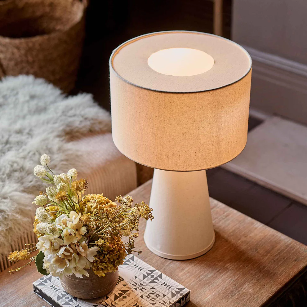 Sculpted from a creamy, smooth fabric, this table lamp epitomises lighting your home in style. Not only will it inject warmth and softness into your decor through its neutral, soft hues but its eye-catching, geometric shape will bring a major dose of elevation too.