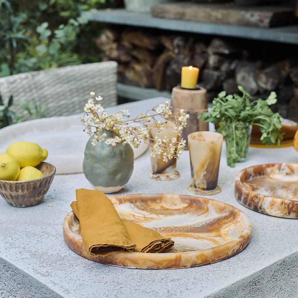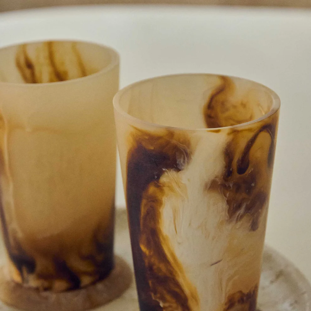 With its swirling patterns of grounding earthy brown and sand hues, our Evant Cup brings an elegant and enchanting touch to any tablescape.