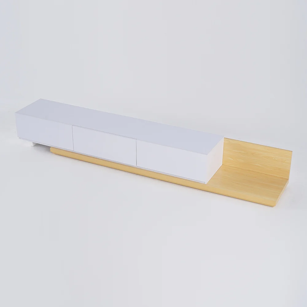 It’s a contemporary TV stand with the extendable feature to adjust the length versatile for living room layouts and fitting larger TVs. This media console is perfect for the modern living room-it’s functional, elegant in design, and has ample storage for media accessories to enhance your home’s aesthetic.