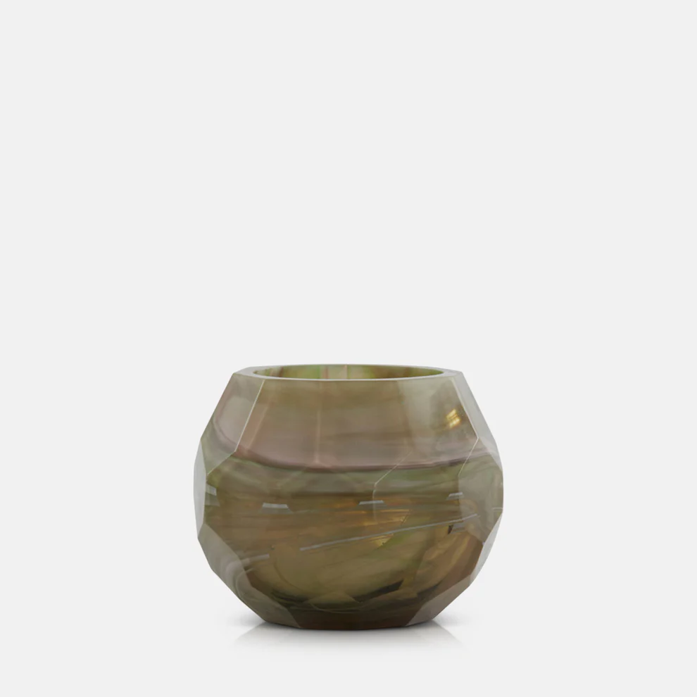 With its undulating hints of green and brown hues and a timeless design, this Matteo Glass Tealight Holder is such a charming addition to any accessories collection.