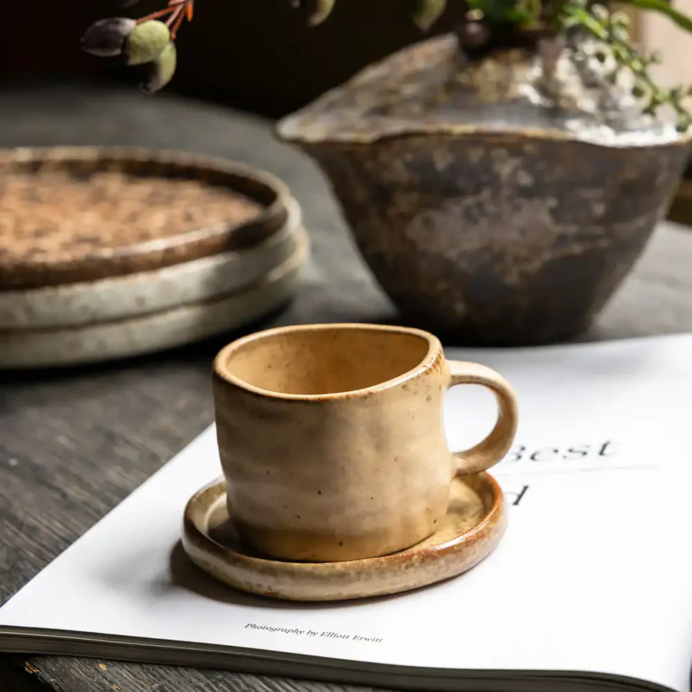 Let yourself be enchanted by the charming silhouette of this cup and saucer set, and transport yourself to a zone of relaxation. The perfect size for your morning coffee or cup of tea, its organic finish oozes character and whimsy. Too beautiful to hide away in a cupboard, think about displaying them on some shelves or a decorative tray in your kitchen when not in use for extra style points.