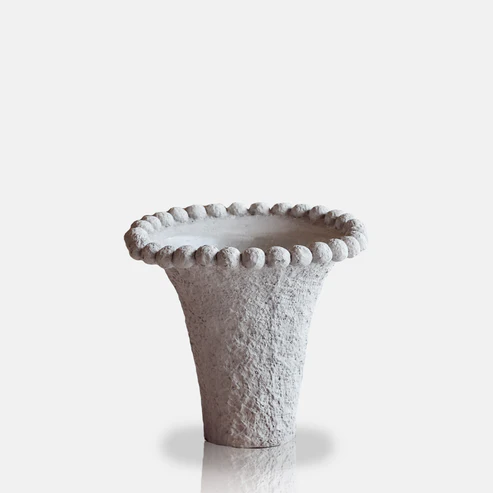 Inspired by classic silhouettes but with a playful bobble detail, this timeless cement vase is super easy to style. Bringing in a beautiful rustic sensibility, the organic texture and subtle colour make it the perfect base to style so many different styles of faux flowers in. Arrange a few of your favourite voluminous faux hydrangea in it for a stunning contrast of softness, or double down on the texture with an array of characterful faux foliage to offset its silhouette beautifully. The choice is all yours!