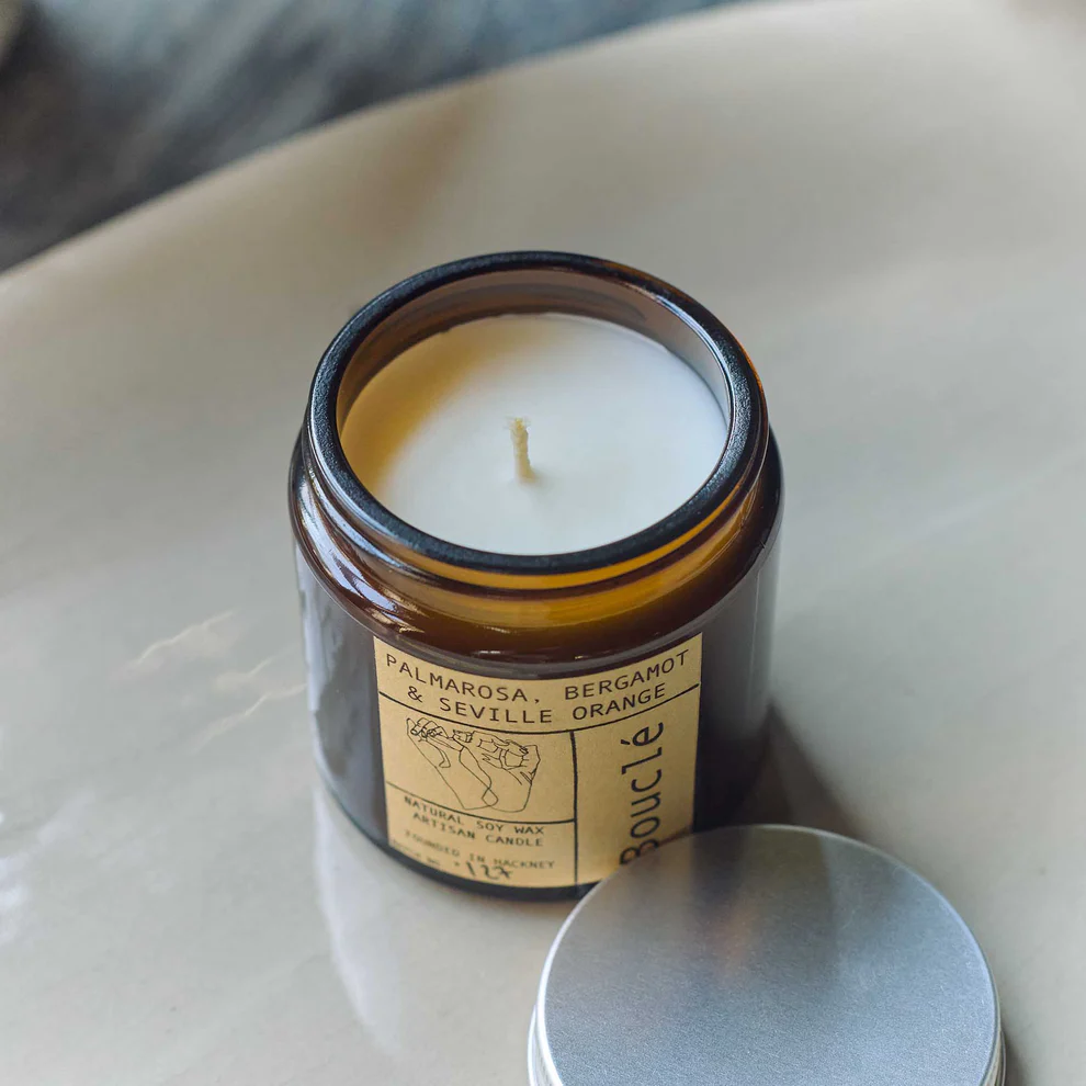 Crafted with pure essential oils and a vegan soy wax, this scented candle has a mix of Palmarosa, Bergamot & Seville Orange notes that exudes summer and sunlight any time of the year.