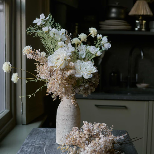 With a rustic and artisanal feel combined with a classic shape, this cement vase is super easy to stye. Arrange a bouquet of your favourite AA faux flowers in it and pop it on a console table, kitchen counter or coffee table. The warm but neutral colour means that you can get creative with the flowers you pair it with, or stick with similar tones and focus on contrasting texture.
