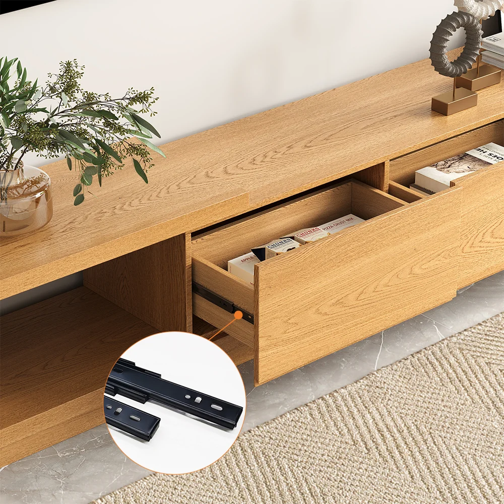 Three spacious drawers with whisper-close glides swallow gaming consoles and media accessories, transforming cluttered living rooms into serene, organized spaces.