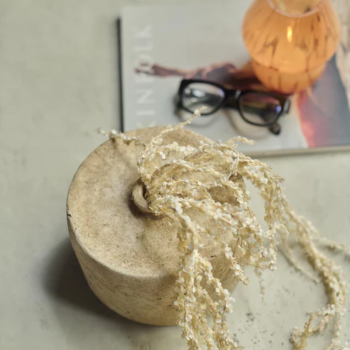 This cement vase has a gorgeous rustic and artisanal feel combined with an intriguing shape that’ll make it an instant classic in your home. With a smaller mouth than many of our other vase, you’ll only need a small amount of your favourite AA faux flowers to style it with. Pop it on a console table, kitchen counter or coffee table. The warm but neutral colour means that you can get creative with the stems you pair it with, or stick with similar tones and focus on contrasting texture.