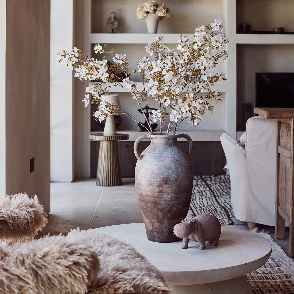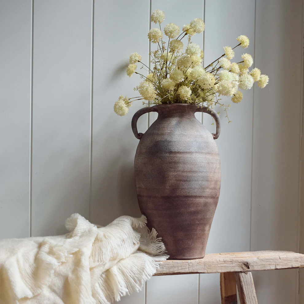 This sculptural Romy Terracotta Vase has a classic shape and elegantly finished in a speckled brown glaze won’t fail to add a show-stopping focal point to your home decor.