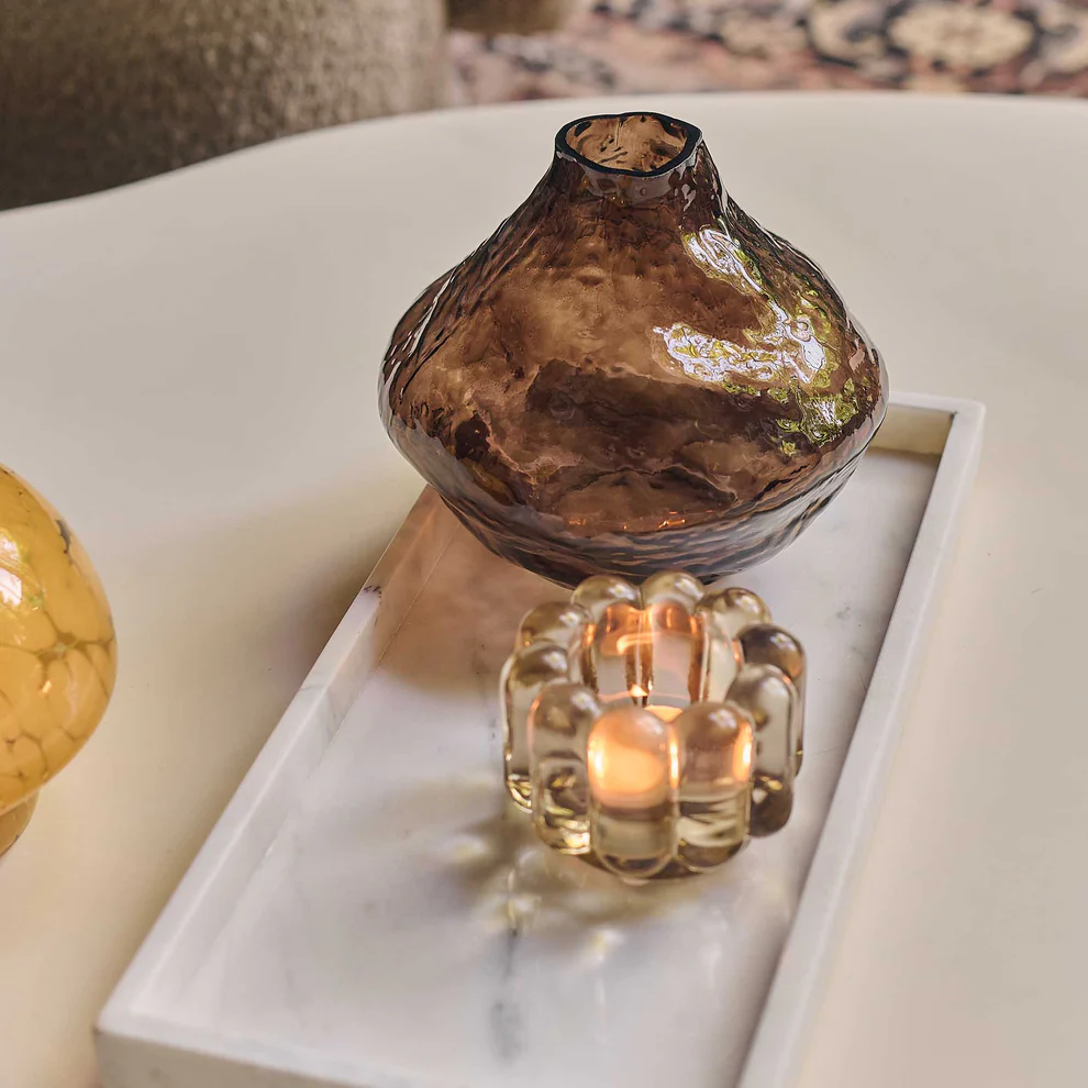 Elegant and with an artisanal look, there’s nothing not to love about our beautiful Rossano Glass Vase.