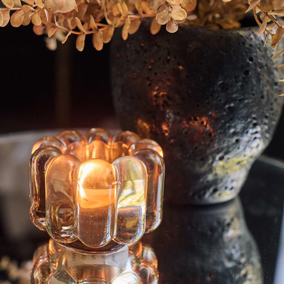 The curved silhouette and beautiful, smoky colour of our Rubia Glass Candle Holder is enchanting, but simply magical when lit by candlelight.