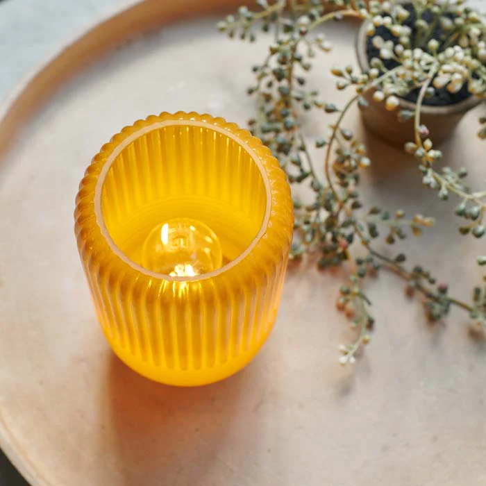 Experiment with your lighting schemes by introducing the Sarla Portable Table Lamp into your home. Cordless and battery operated, and with such a fabulous and timeless linear ribbed design, this amber LED lamp can sit on literally any surface to instantly provide a cosy ambience.