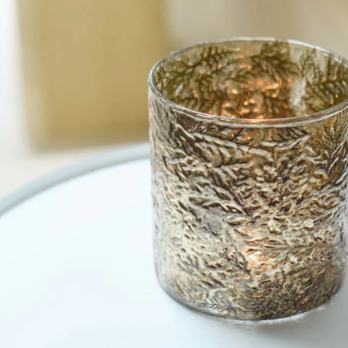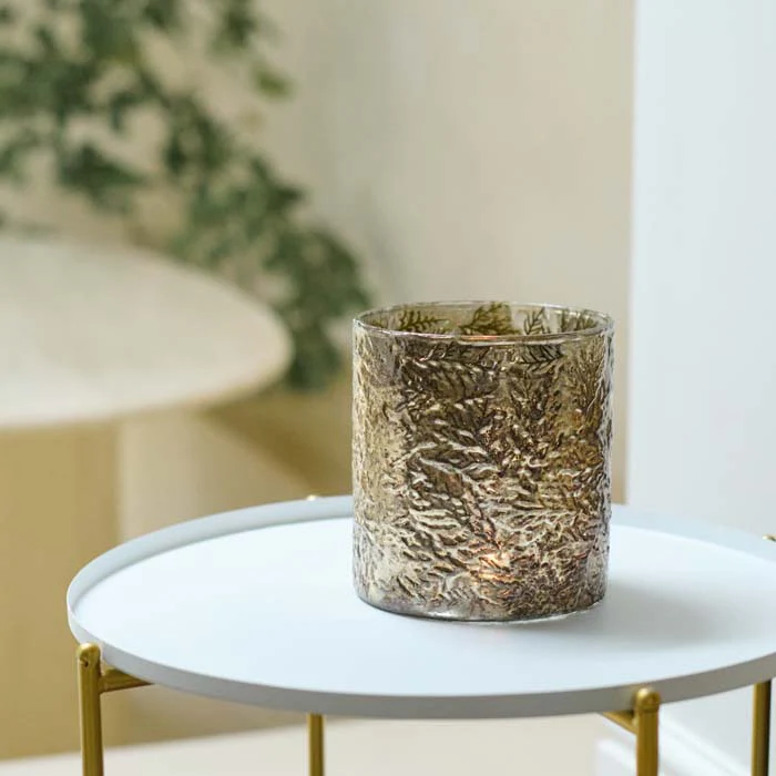 Metallic candle holders are a fabulous way to instantly upgrade the ambiance of a room because of the way they reflect the light so beautifully, and this Tulandi Glass Candleholder does just that. Crafted with a subtle floral pattern amongst the gold that brings in a naturalistic vibe, this glass candleholder will elevate any surface.
