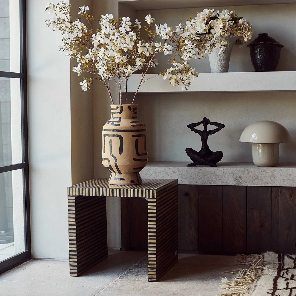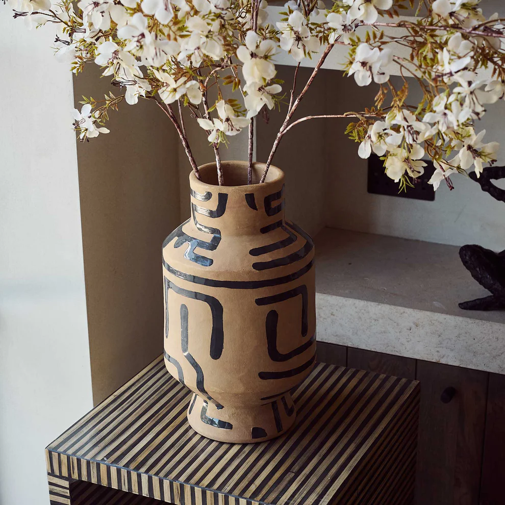 Our Yarona Ceramic Vase has a timeless shape elevated by its characterful pattern, and will add a unique and artistic vibe to any room you style it in.